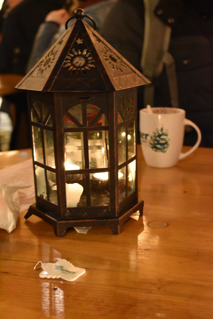 Warto jednak tu przyjść, choćby ze względu na piękne kubki, oraz serwowany gorący napój na bazie austriackiego likieru jajecznego Mozart z bitą śmietaną – znakomicie rozgrzewa! Niezaprzeczalną zaletą jest też bliska odległość do świątecznej wioski przy Ratuszu – największym i najbardziej popularnym jarmarku!